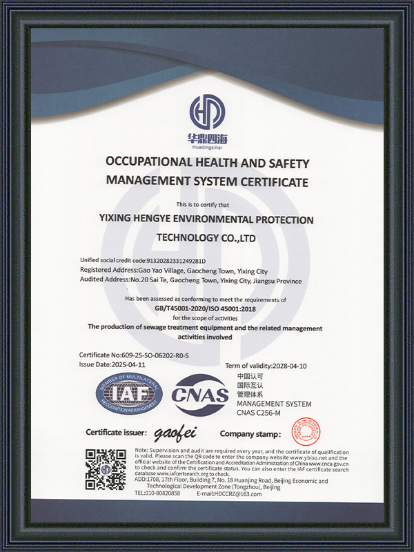 Occupational Health and Safety Management System Certification Certificate